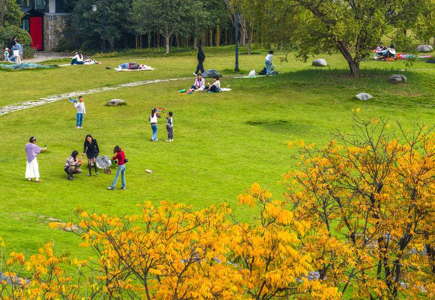 湖北日报客户端讯(通讯员王罡、樊启富)周日,雨后放晴,在湖北省宜昌市秭归县,人们纷纷走进五彩缤纷、色彩斑斓的公园和景区,乐享秋日美好时光。