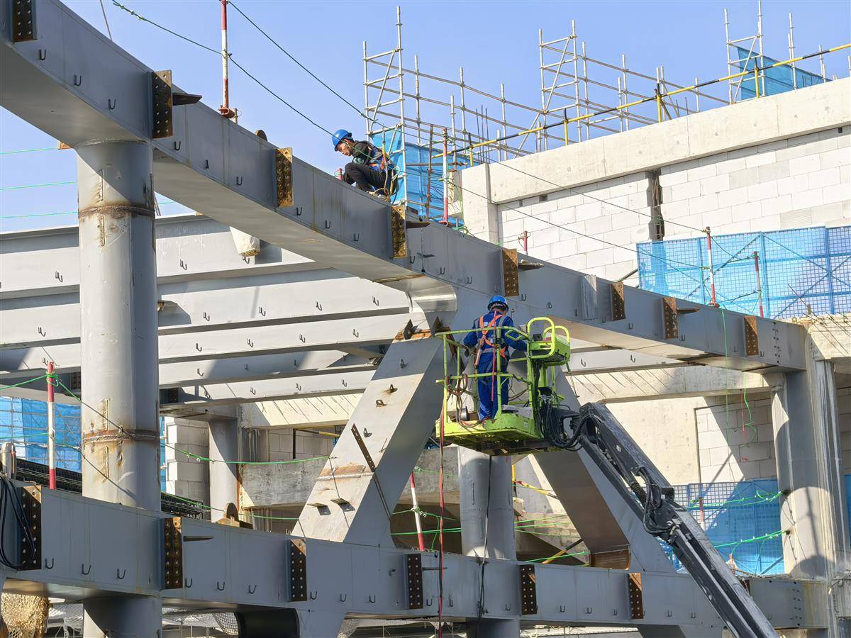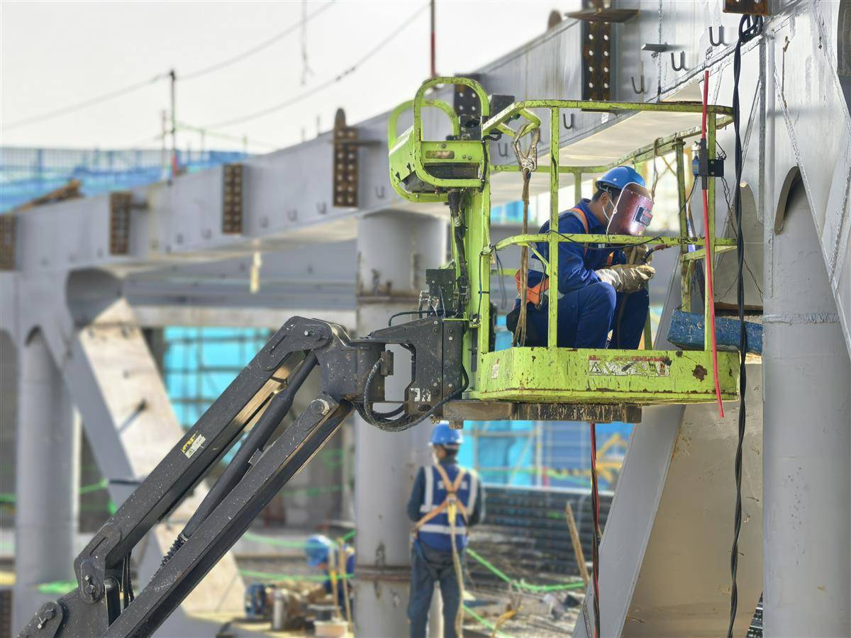 面对复杂的结构施工,项目团队开展了一系列技术攻关。针对大量圆柱、圆弧异形混凝土结构,采用定制化模板,精准控制施工质量;对综合教学楼36米大跨度钢结构跨层空间连廊,运用BIM技术提前进行节点深化设计,采用三维可视化交底确保节点施工安全;在风雨操场树状钢结构柱以及65米大跨度双向交叉钢拱架施工中,采用工厂加工、现场定型拼装的装配式建造方式,大幅提升施工效率。