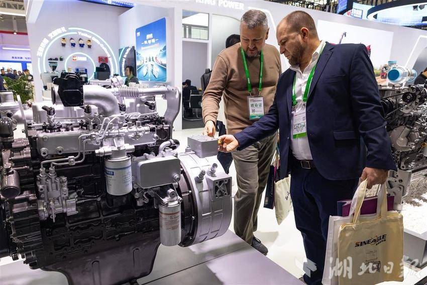 图为此次农机博览会也吸引不少国际客户前来洽谈合作。