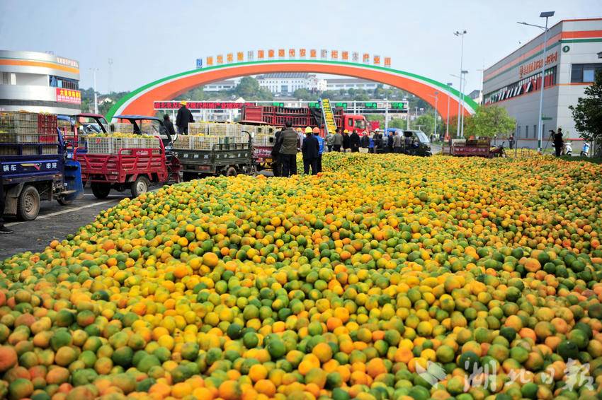 在夷陵红生态农业开发有限公司厂房内,来自外地的大货车正排队等待着装车。厂房内,机器人将一个个果筐搬上生产线,对柑橘进行精细分级、包装。13500平方米的仓库内,100多名工人分布在筛选区、打包区、装货区有条不紊地忙碌着。