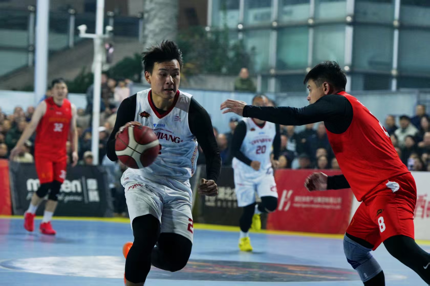 下半场,两队换边再战,潜江队持续发力,逐渐掌握主动权,领先优势一度扩大到15分,现场气氛彻底燃爆,观众掌声与呐喊声不断。第三节结束,潜江队以63:55领先8分。