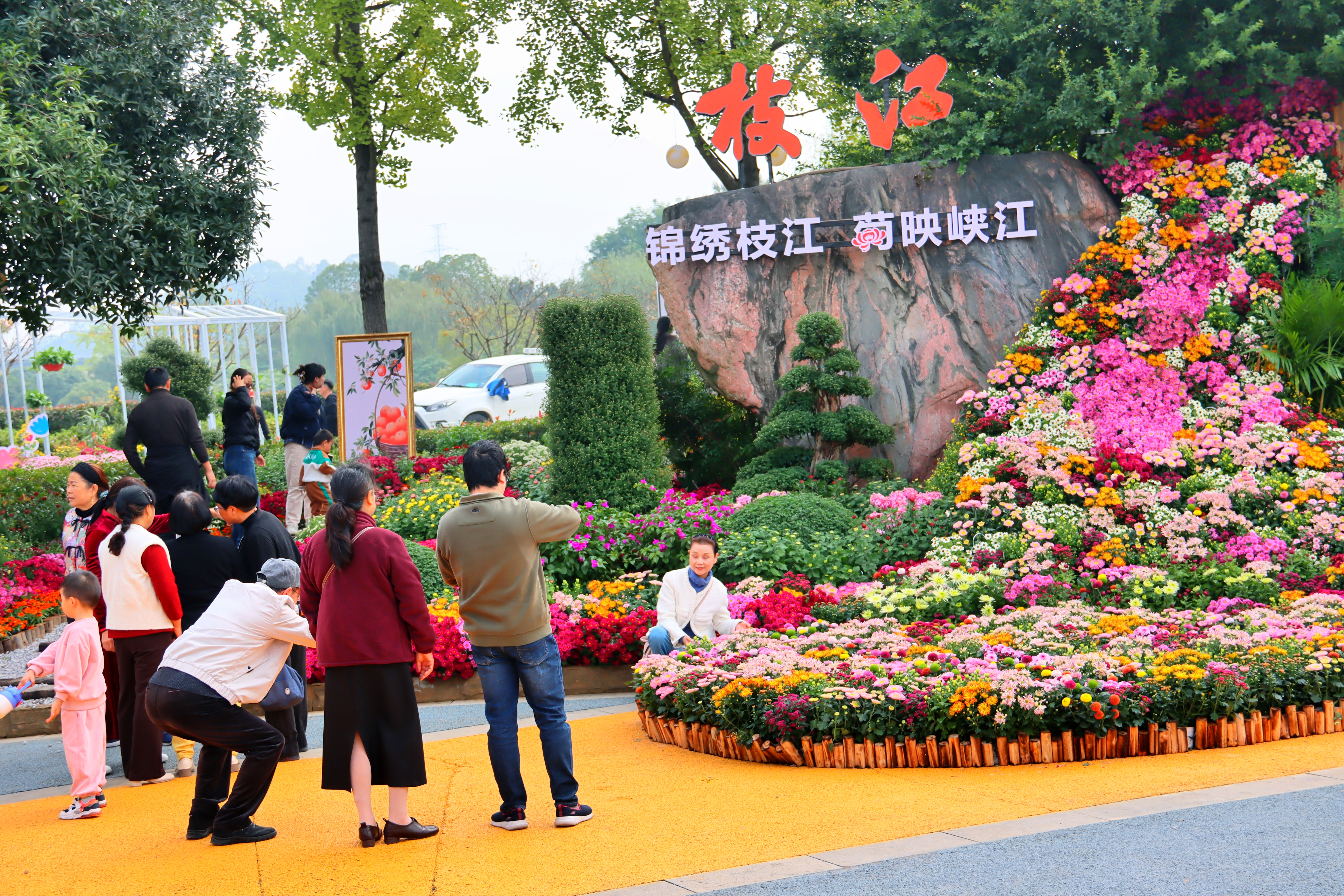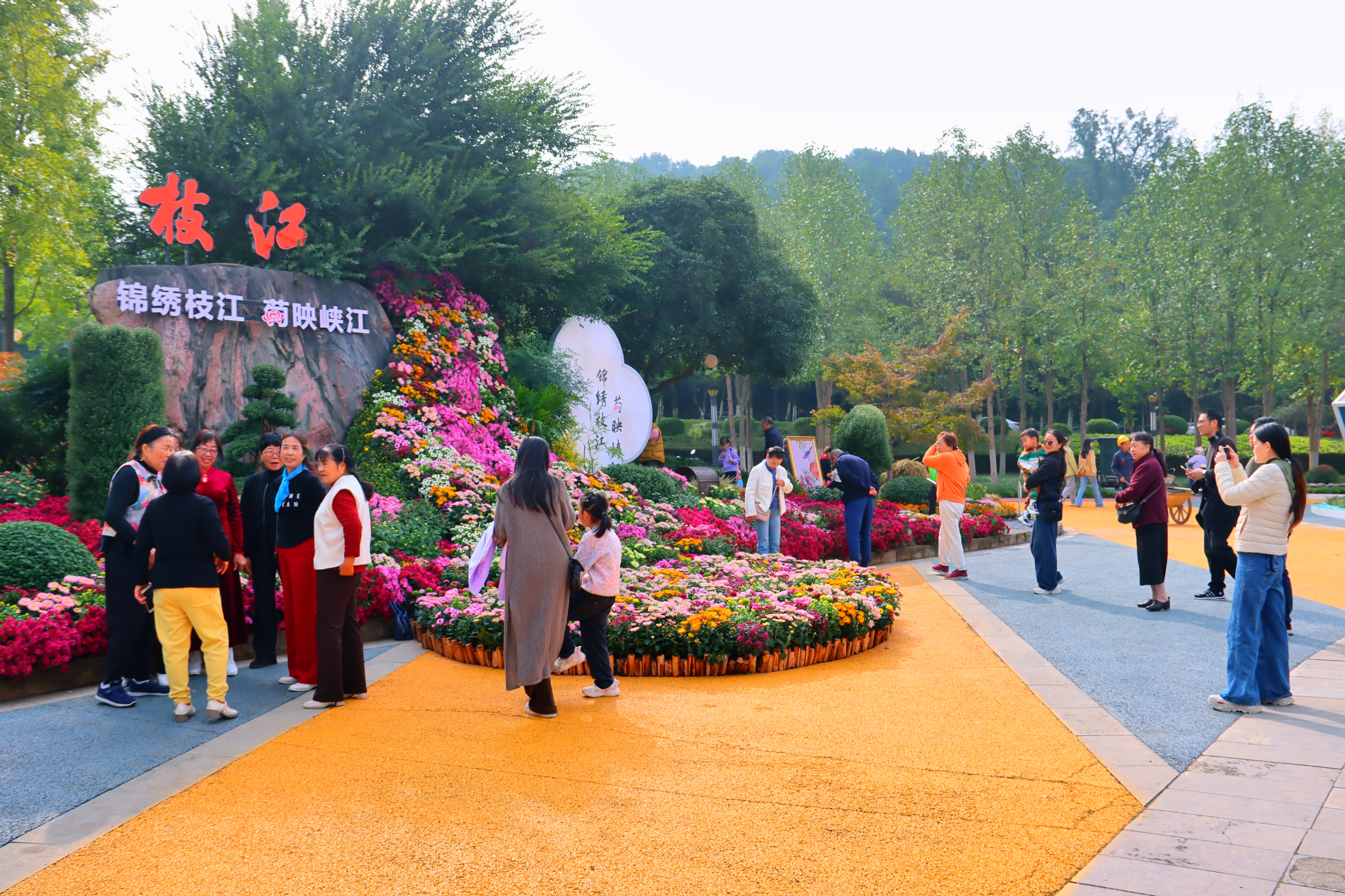 枝江市园林绿化中心副主任向青华介绍说:“本次参展,我们继续秉承节约办展的理念,以‘锦绣枝江 菊映峡江’为主题,精心设计,通过色彩搭配与造型组合,展现出枝江作为‘大河稻乡’的自然之美与人文底蕴。”