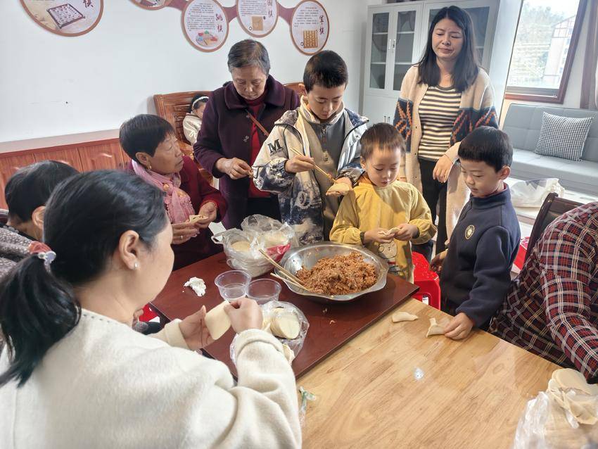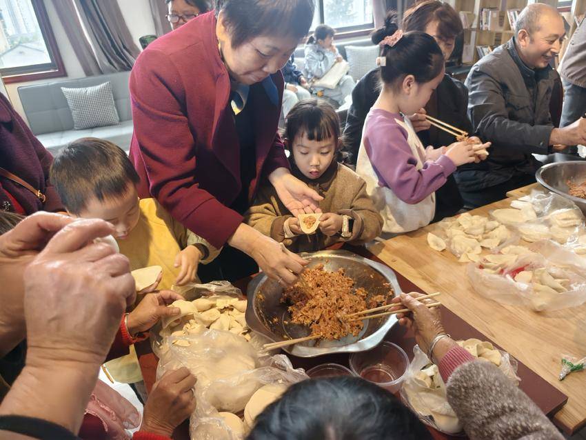 活动现场,在童伴妈妈和社区志愿者的指导下,孩子们认真学习着包饺子的每一个步骤,从拿面皮到放进馅料,再到捏合成型,现场洋溢着欢声笑语。长者们也参与其中和孩子们围坐在一起,“大手牵小手”共同包饺子,现场其乐融融。不一会儿,一盘盘形态各异的饺子“新鲜出炉”。随后志愿者们开始煮饺子,一碗碗热气腾腾的饺子出锅,孩子们将热乎乎的新鲜饺子端给老人们,大家被温暖的气息包围,长者们品尝着孩子亲手制作的饺子,赞不绝口。