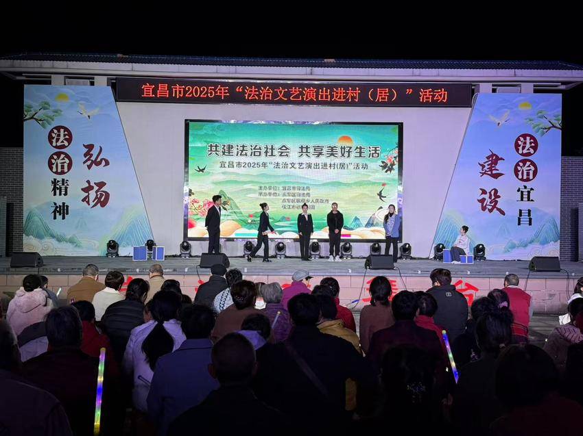 湖北日报客户端讯(通讯员 陈晓芳)10月24日,由宜昌市司法局主办,点军区司法局、联棚乡人民政府及枝江市歌舞剧团共同承办的2025年“共建法治社会 共享美好生活”法治文艺演出,在点军区联棚乡双溪村顺利举行。