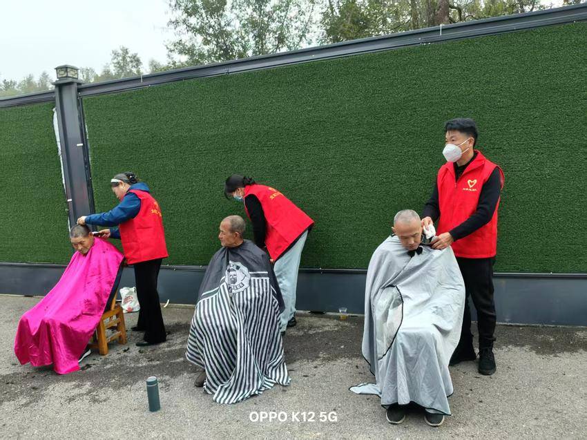 活动现场志愿者们通过歌舞、包饺子等一系列活动,与老人们一起喜迎重阳佳节,传递爱心温暖,弘扬敬老风尚。针对行动不便而难以打理个人形象的老人,志愿者的理发师更是精心准备,逐一为老人们理发,老人们脸上洋溢着幸福的笑容。