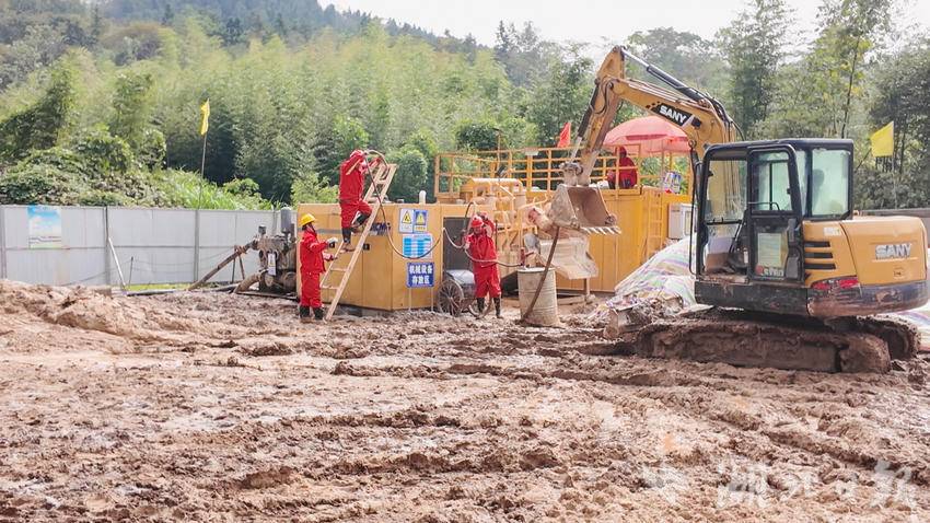 10月26日,在崇阳县桂花泉镇的吉家坡定向钻穿越工程现场,工作人员正在对山体进行定向钻穿越。由于山体地质条件复杂,对定向钻有极强的挑战。