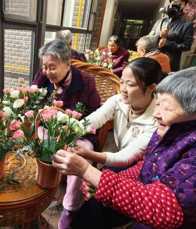最温馨的环节莫过于“花香伴重阳”插花活动。馆员与文旅志愿者化身贴心助手,与老人们一对一协作。修剪花枝、构思搭配……在欢声笑语中,象征长寿吉祥的菊花、康乃馨在老人们手中被巧妙组合,变成一个个独具匠心的花篮。他们脸上绽放的笑容,比秋日的阳光更加灿烂。