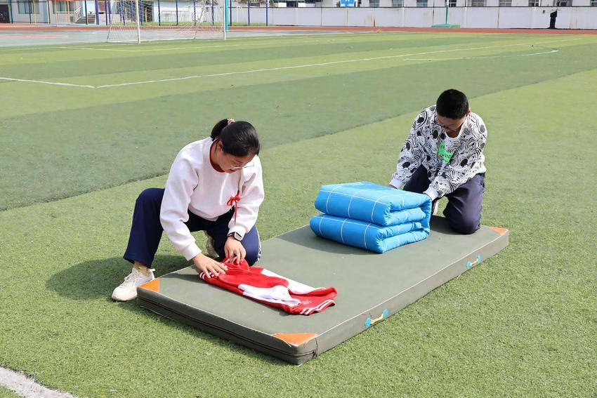 开幕式结束后,全校24个班级分组展示了队列训练展示与生活技能比赛。