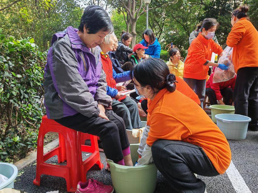 活动现场,志愿者们请老人并排而坐,给老人们洗脚,志愿者们一边贴心地为老人洗脚,一边和老人唠家常,询问他们的生活状况和身体情况,志愿者们对没有亲缘关系的老人像对待自己的父母一样,活动现场温情感人。