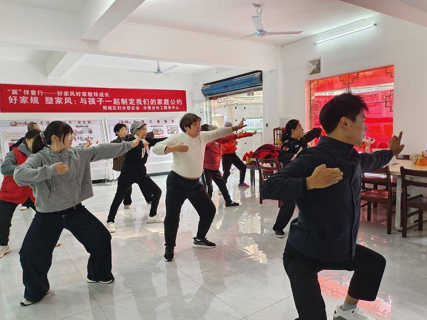 现场还设有智能手机使用咨询点,志愿者们耐心指导老人进行医保缴费、养老认证等线上操作,贴心服务赢得一致好评。活动尾声,社工还组织了一场养生健身活动。在瑞火体育专业老师带领下,居民们一起学习传统养生功法“八段锦”,大家跟随舒缓的节拍舒展身体,动作整齐,成为现场一道亮丽的风景。