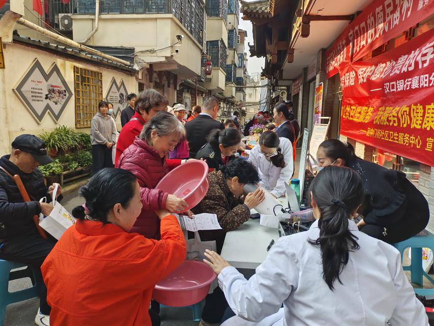 当天下午,社区新时代文明实践站门口的巷子里暖意融融。免费理发摊位前,“从头爱你”志愿者们手法熟练,耐心为老人修剪头发。定中门街卫生服务中心的健康义诊与爱尔眼科医院提供的眼科检查,深受社区居民好评,医护人员细致地为居民测血压、查视力,提供专业咨询,让大家在家门口就能了解健康状况。传统的衣物缝补服务充满生活气息,“巧手妈妈”们飞针走线,修补衣物,传递着邻里互助的温情。汉口银行的工作人员围绕防范金融诈骗、安全理财等知识进行了讲解,并为参与活动的老人们送上了贴心的小礼品。