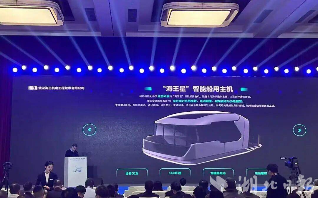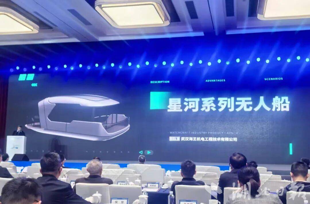 湖北日报讯(通讯员朱珂、许露)10月23日,2025绿色能源发展大会在宜昌举行。在大会“内河绿色智能船舶发展”主题报告会上,中国船舶第719所下属武汉海王机电工程技术有限公司隆重推介最新产品“星河系列无人船”,其创新设计与前沿技术吸引了现场客户、业内专家及合作伙伴的浓厚兴趣,成为全场关注焦点。