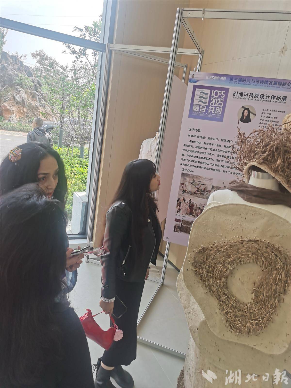 来自新疆的以桑皮纸为织物的设计作品受到嘉宾关注。(湖北日报全媒记者包东喜摄)