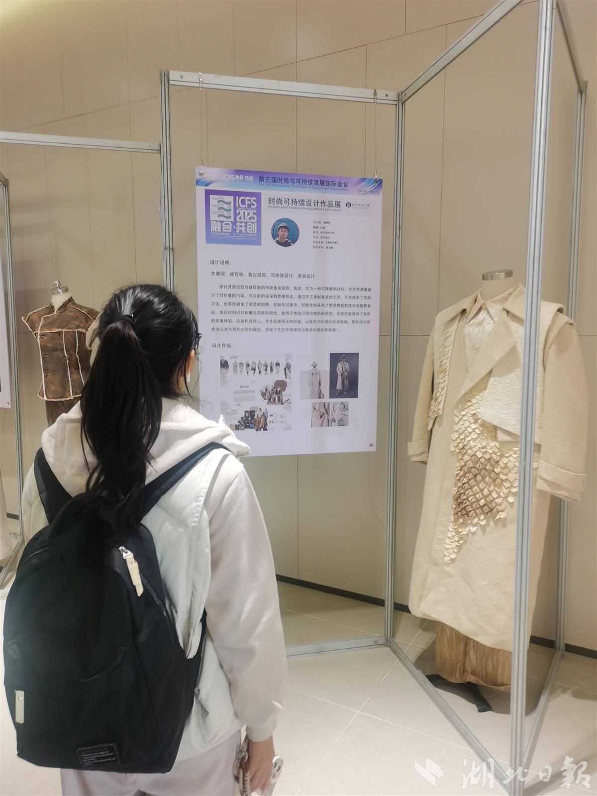 一位来宾正在欣赏设计作品《渔织衣韵》。(湖北日报全媒记者包东喜摄)