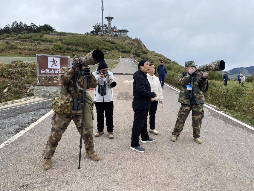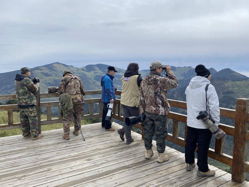 行至神农顶瞭望塔附近,林间相机快门的轻响打破静谧。河南野鸟会“龙山射雕队”的三名队员正在此驻足观测,他们或蹲或站,长焦镜头牢牢锁定林间晃动的枝头,目光紧随目标,神情专注而热切。片刻后,一名队员轻声欢呼,迅速举起相机向同伴展示刚拍摄到的珍稀鸟种,喜悦之情溢于言表。“这就是我今天拍的新品种,多漂亮呀!今天太高兴了,神农架真是不白来。”