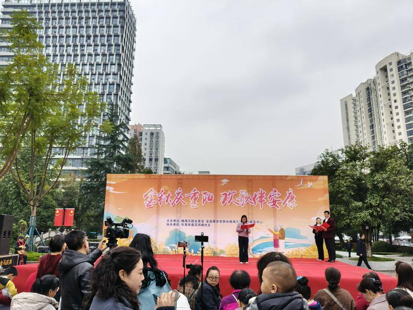 湖北日报客户端讯(通讯员吕祖培)岁岁重阳,今又重阳;桑榆情暖,敬老意长。为弘扬中华民族尊老、敬老、爱老的传统美德,营造温馨和谐的节日氛围,10月25日下午,由西陵区东苑街道深圳路社区主办,楠海花园小区业委会、宜昌颐安信物业楠海花园物业服务中心共同承办的“金秋庆重阳 欢歌伴安康”重阳节文艺汇演,在楠海花园中心广场温情上演,为辖区居民奉上了一场精彩纷呈的节日文化盛宴。