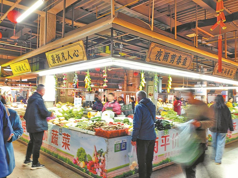 10月27日,市民在樊城区立业路生鲜农贸市场买菜。这里原是老旧厂房,如今焕然一新,成为整洁明亮的农贸市场。(来源:襄阳日报
