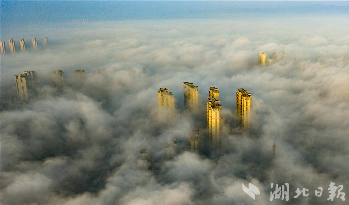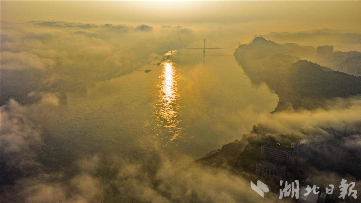 清晨,“峡江城市”宜昌迎来一场绝美的平流雾景观。