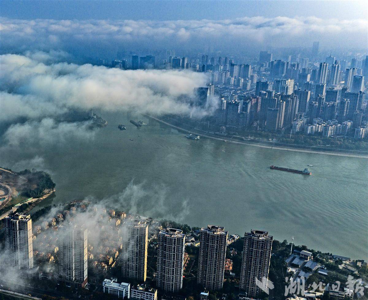 当日天微亮,暖湿气流与长江冷水面相遇凝结成雾,雾气沿江面缓缓蔓延,缠绕两岸山峦,将错落民居、林立楼宇化作隐约剪影。长江主航道上,船只仿佛游弋于云海之间,江面雾气蒸腾涌动,与远处的三峡山峦相映成趣,构成“白云回望合,青霭入看无”的诗意场景。作为长江上中游分界处的生态宜居之城,宜昌因独特的山水格局成为平流雾多发地。这种由暖湿空气遇冷下垫面形成的雾景,常将“水电之都” 装点成缥缈仙境,此次10 月下旬出现的平流雾,更让秋日峡江多了几分神秘韵味,成为城市生态美景的生动注脚。(湖北日报全媒记者 刘曙松 摄)
