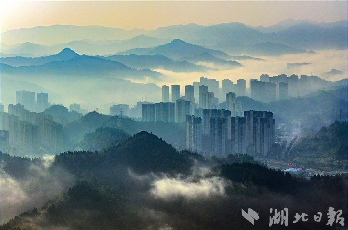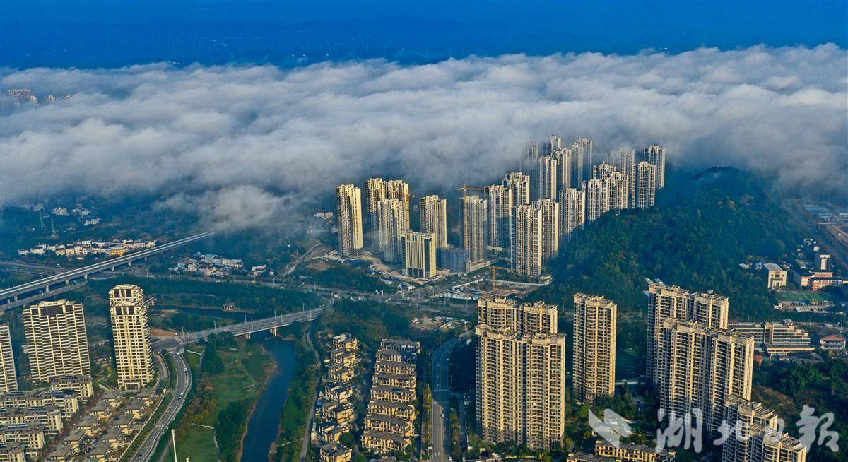 10月28日清晨,“峡江城市”宜昌迎来一场绝美平流雾景观,整座城市被乳白色雾霭轻柔包裹,宛如水墨画卷徐徐展开。
