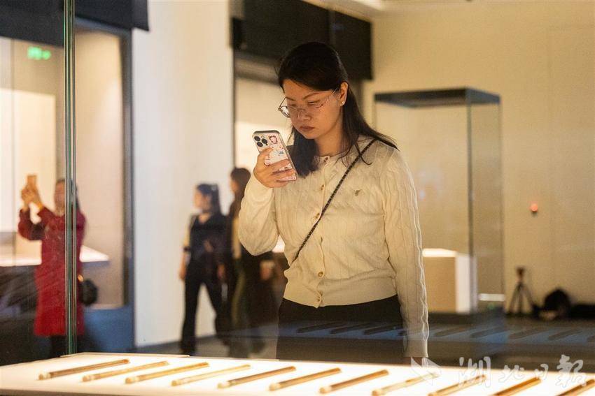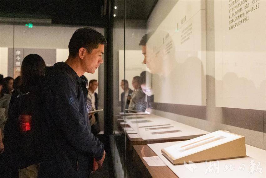 2025年10月28日,湖北省博物馆“简读中国—中国出土简牍展”在南馆四楼火热开展,吸引大批市民游客前来观展。展览展出了曾侯乙墓竹简、战国楚简、睡虎地秦简、里耶秦简、敦煌悬泉汉简,甚至还有三国时期的吴简与晋简等,堪称年代序列最完整的简牍展。(湖北日报全媒记者 何宇欣 摄)