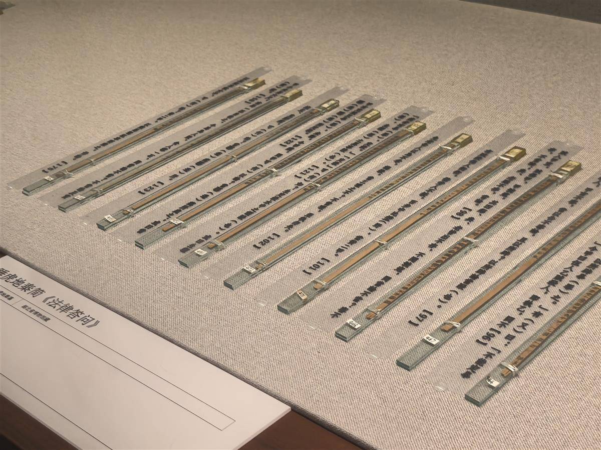 此次展览关注最新材料,引入最新考古与研究成果,一批未曾或很少展出过的文物纷纷亮相。罗恰就展出简牍梳理了一二十个“之最”,内容涉及国家治理、法律体系、社会生活等方方面面,他如数家珍地介绍道——
