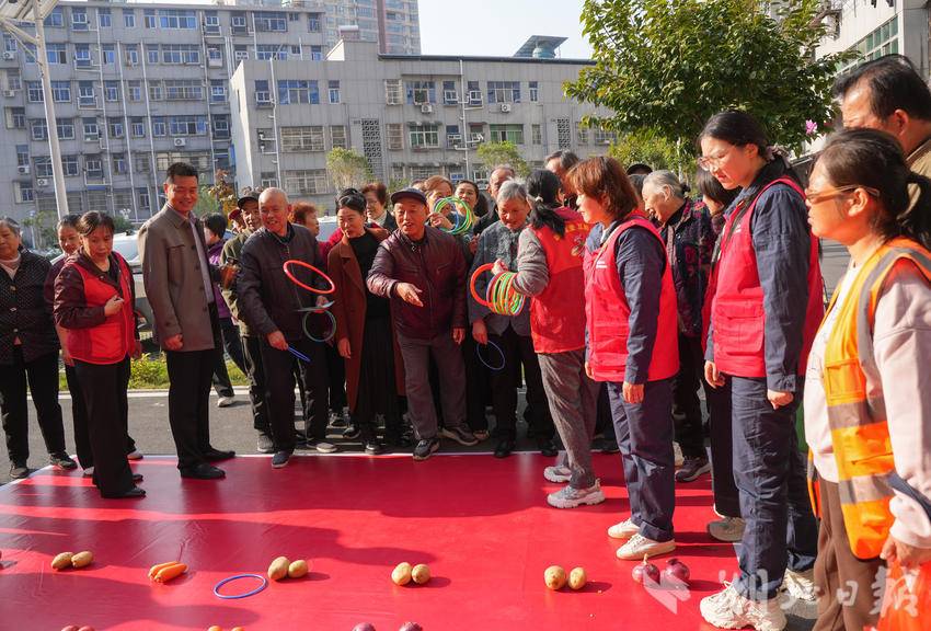 而在专为55岁以上老人设置的“老年专属·蔬果套圈乐”区域,欢笑声、喝彩声汇成一片。老人们仿佛回到了童年,玩起了小游戏,套中蔬果后更是开心得合不拢嘴。除此之外,服务队的队员们对社区公共用电进行了安全检查,并联合社区志愿者带着慰问品一起上门慰问了孤寡老人。