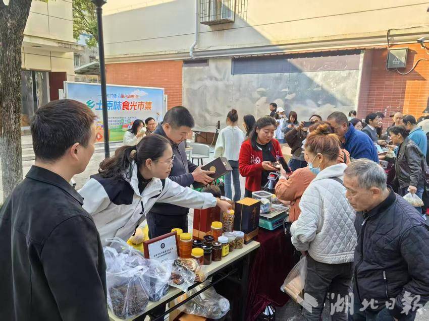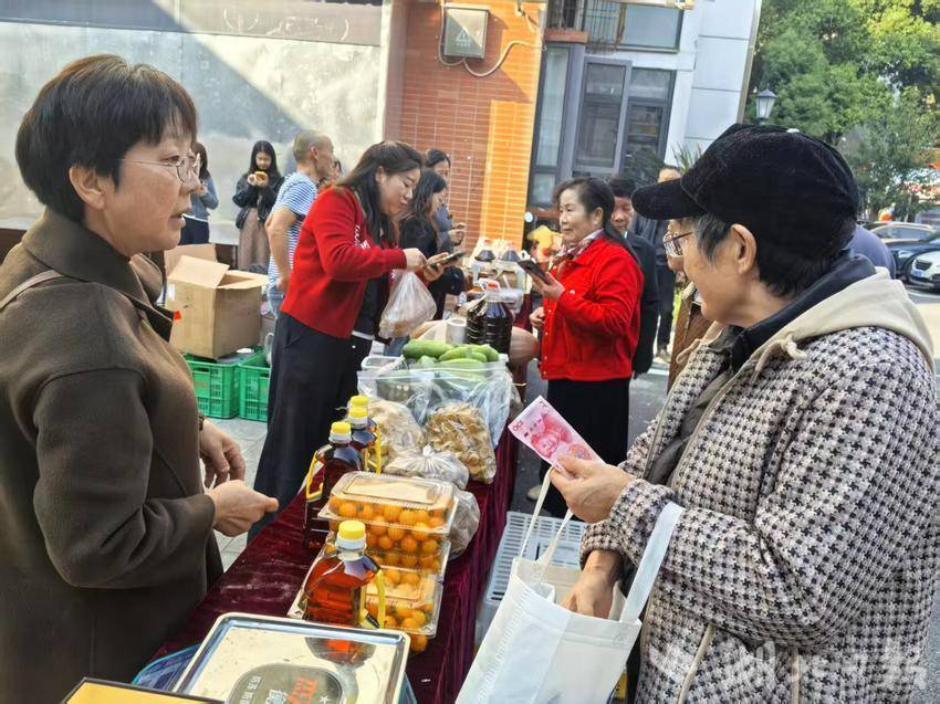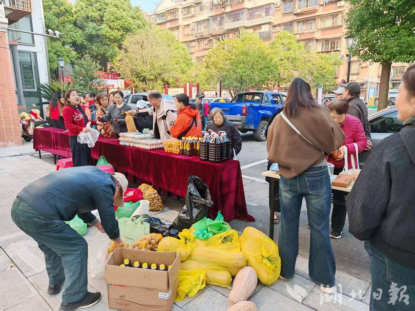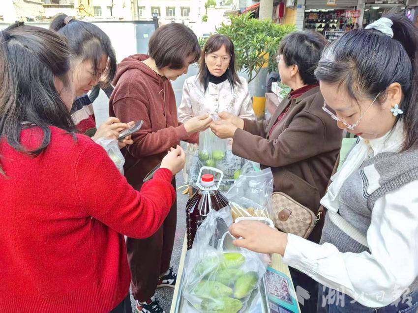 货车一抵达港务社区筑梦广场,就被居民团团围住,选购声此起彼伏:“这南瓜颜色正,我买一个!”“花生看着就地道,来一袋!”“香油看着纯正,给我两瓶!”现场热销的农特产品丰富多样,既有南瓜、土豆、新鲜黄瓜、小番茄等生鲜,也有菜籽油、香油、辣椒酱、鸡蛋、土鸡、蜂蜜,还有柴火豆腐、辣椒皮干、橡子豆腐等干货。仅一上午,这些深山好物便被抢购一空,聂家河镇山上四村(白家淌村、凤凰池村、王家坪村、丁家坪村)总销售额近万元。
