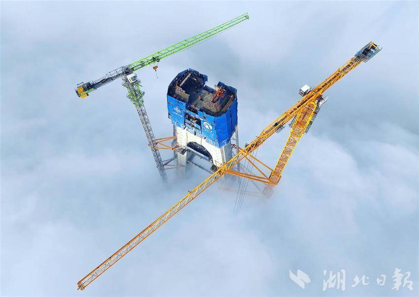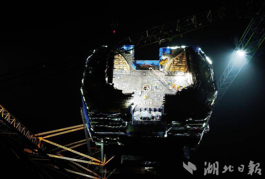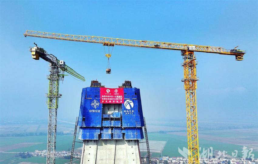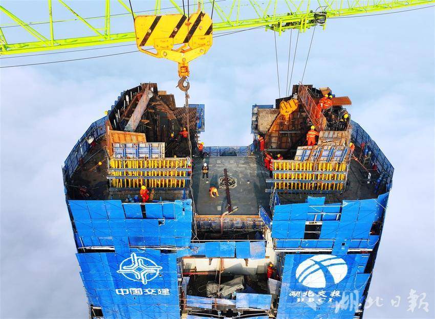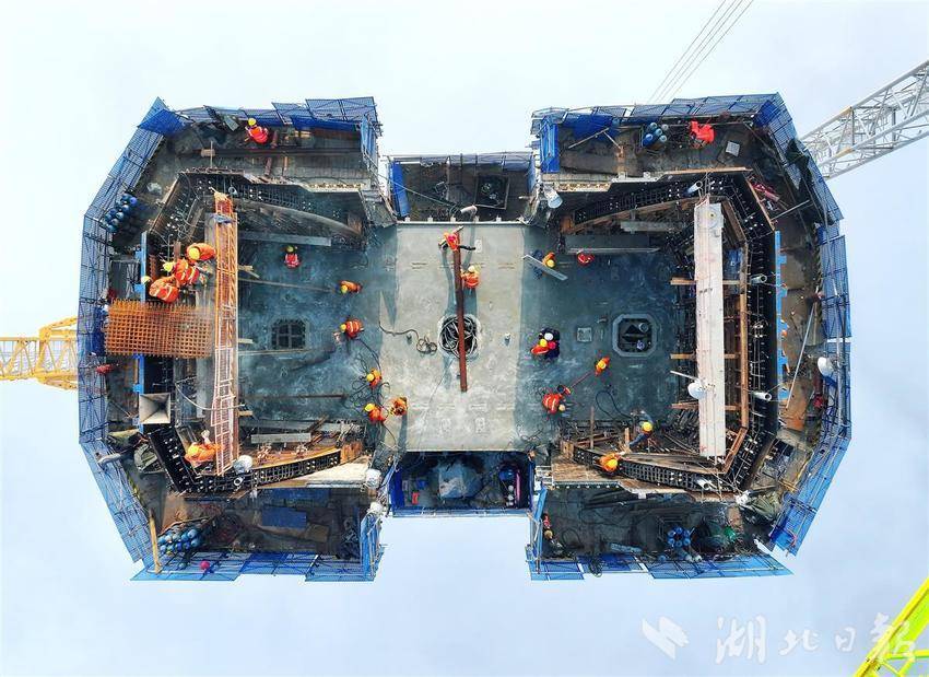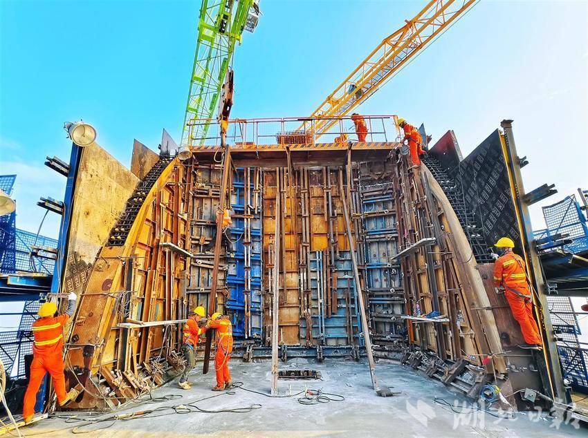 封顶前夕,施工人员连续几天昼夜施工,确保汉江特大桥主塔各项工作有序推进。