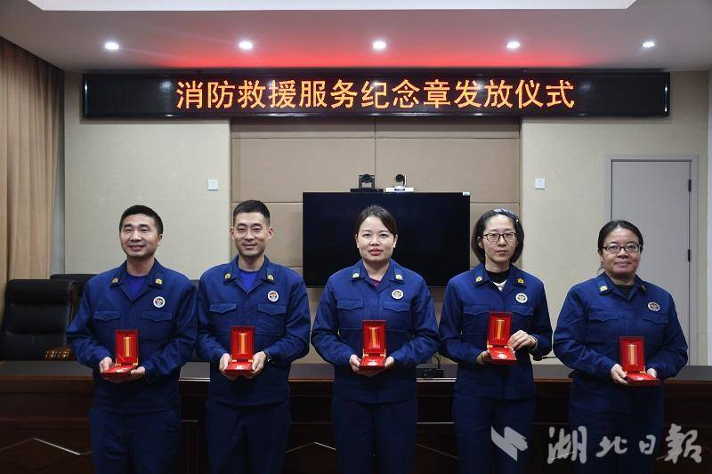 湖北日报客户端讯(通讯员:周刚)近日,五峰土家族自治县消防救援大队为政府专职消防员和文员统一发放消防救援纪念章。