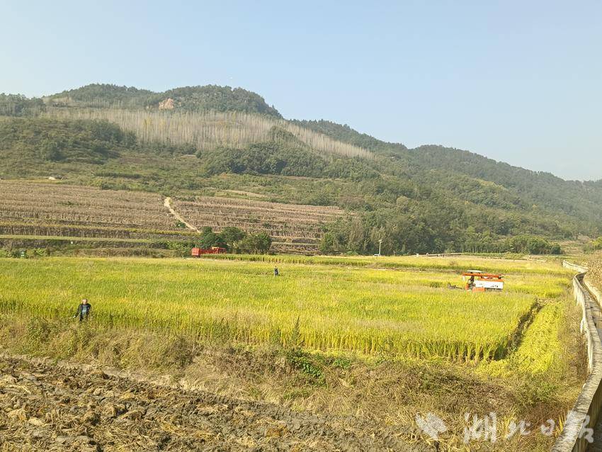 湖北日报客户端讯(通讯员梅馨雨)金秋时节,郧阳区谭家湾镇广袤的田野上处处可见一派繁忙景象,演绎着丰收与希望的交响曲:一侧是翻滚的金色稻浪和挺立的玉米林,收割机轰鸣作响,正紧张有序地进行抢收;另一侧是刚刚褪去“黄金甲”的土地,旋耕机、播种机往来穿梭,翻整土地,播下来年希望的种子。与此同时,一场针对撂荒地的“唤醒”行动也在同步推进,一片片撂荒地,也在大型机械的作业下重焕生机,平整待种。谭家湾镇正以“时不我待”的紧迫感紧抓农时窗口期,统筹秋收秋播与撂荒地整治重点工作,全力保障粮食安全,夯实乡村振兴根基。