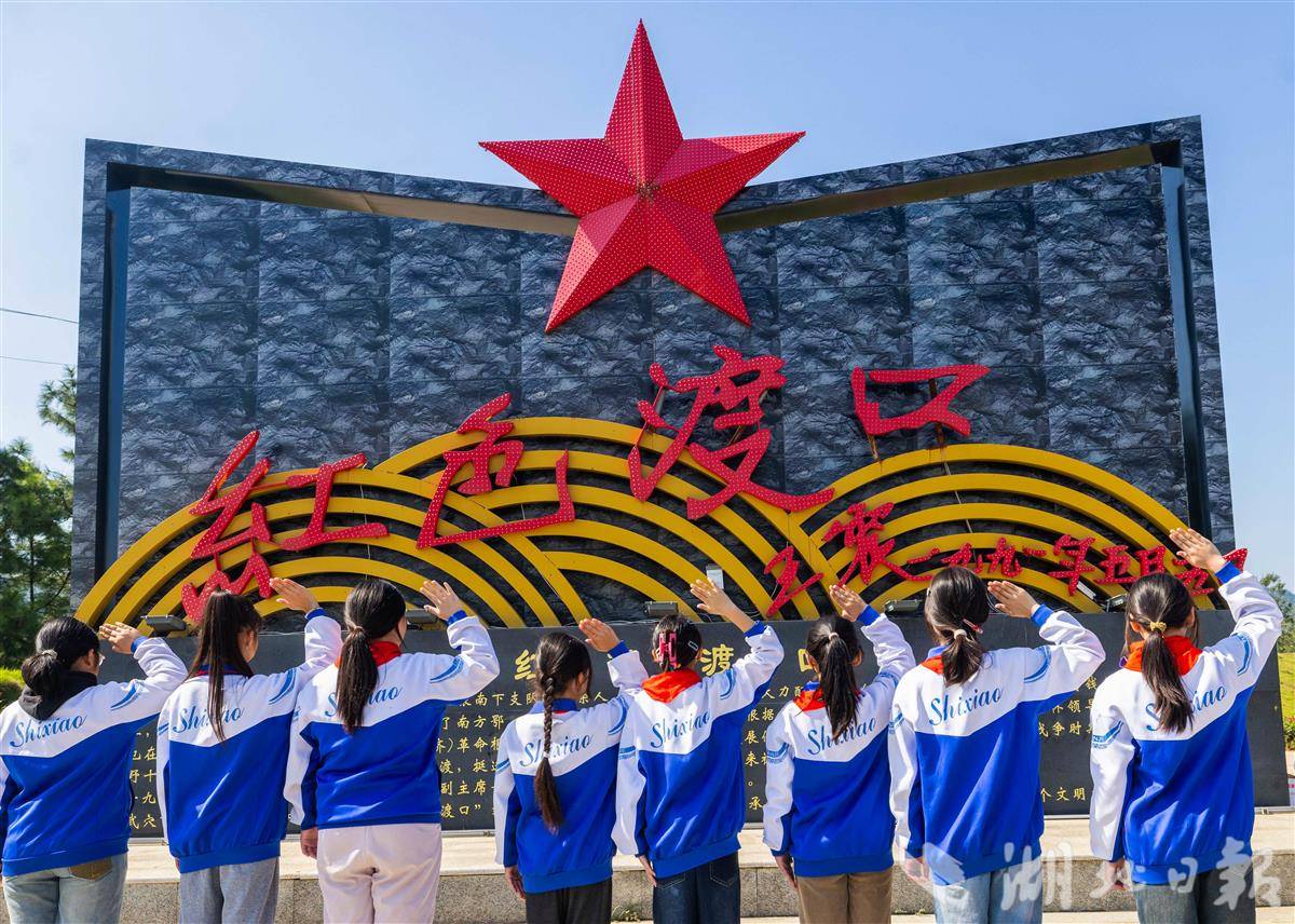 10月23日,武穴田家镇铸钱炉村红色渡口文化广场,武穴市实验小学学生敬队礼。