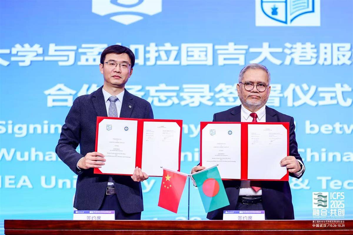 10月28日,武汉纺织大学与孟加拉国吉大港服装与技术大学副校长签订合作备忘录。