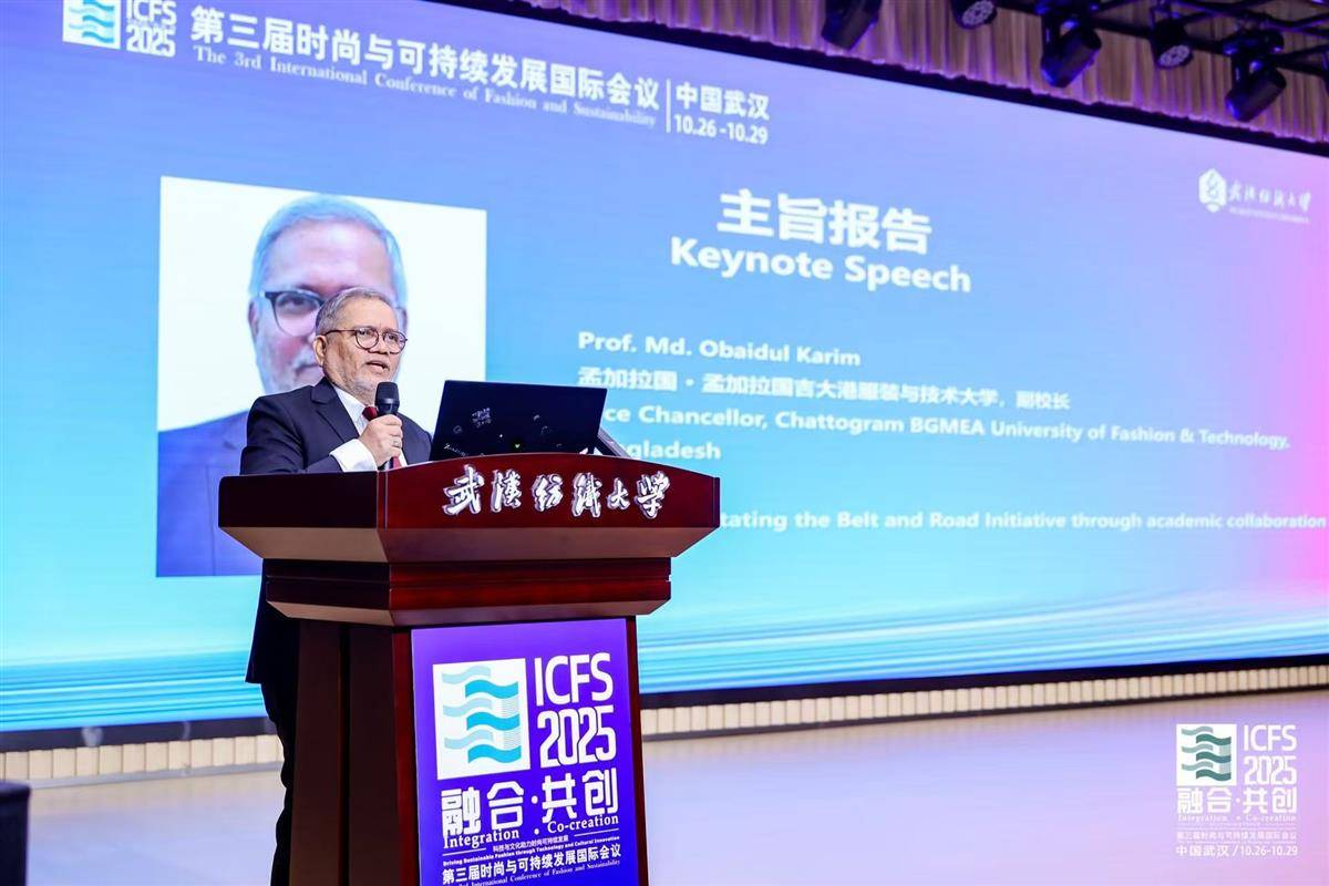 孟加拉国吉大港服装与技术大学副校长Md. Obaidul Karim以“通过学术合作助力‘一带一路’倡议”为题,阐述了高等教育在联通文化与经济中的桥梁作用。他表示,武汉纺织大学在时尚可持续教育领域有着前瞻布局,在纺织服装学科建设和国际化合作取得的成果令人印象深刻,期待未来能在师生互访、联合科研及课程共建等方面推动合作落地。