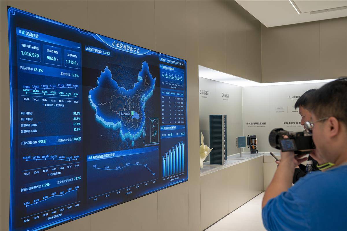 走进小米智能家电工厂展厅,监控屏幕上数字闪烁:截至10月28日15时,全国已累计联网小米空调1715万台,当前开机运行101万台,过去一周平均每天都有约4000台激活联网。