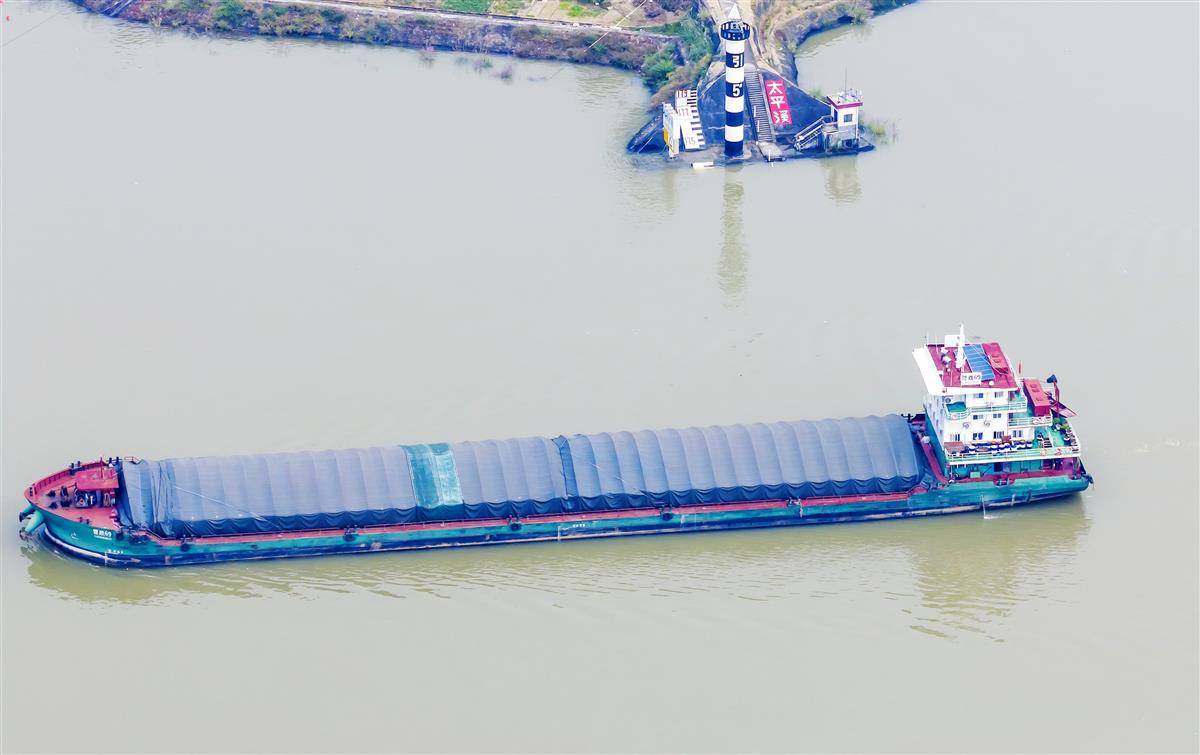 10月24日,船舶从三峡大坝上游太平溪水文标尺前驶过。