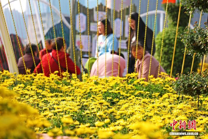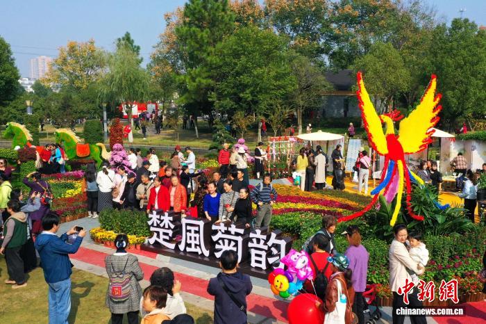 10月28日,湖北省宜昌市第40届菊花展开幕,独本菊、墨菊、悬崖菊等35万余盆菊花及各种花卉惊艳亮相,吸引大量市民与游客前来赏菊赏花。据悉,此次菊展深度融合宜昌文化脉络与发展实践,将23组扎景打造为讲述城市故事的“流动展厅”,部分作品还创新融合声、光互动装置与花鸟虫鱼等自然元素,营造出沉浸式赏菊氛围。图为菊展现场(无人机图片)。周星亮 摄