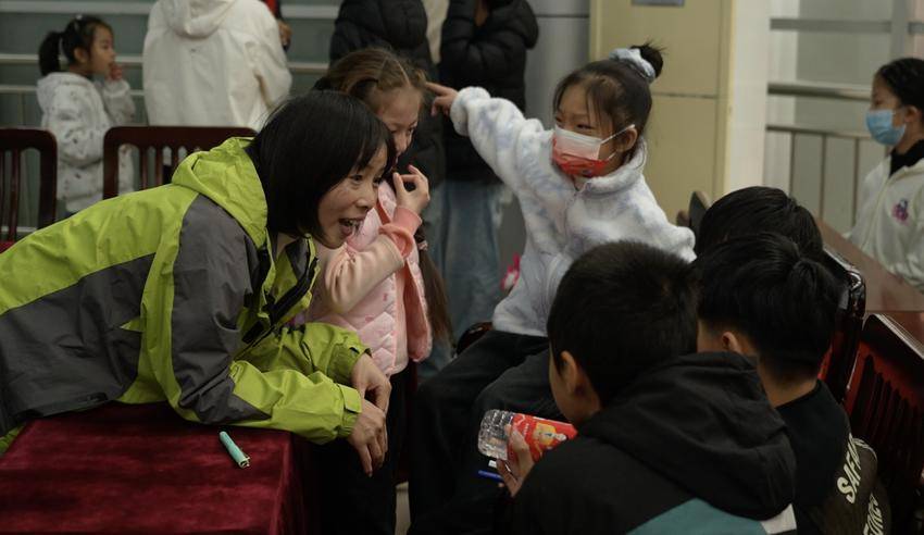 在温馨的“心灵放映室”环节,孩子们分组找到志愿者,将他们视为可以信赖的“放映员”,敞开心扉,分享自己的小故事、小烦恼和小心愿。这一环节为孩子们提供了一个安全的情感宣泄和倾诉渠道,有效疏导了心理压力,呵护了他们稚嫩而敏感的心灵。
