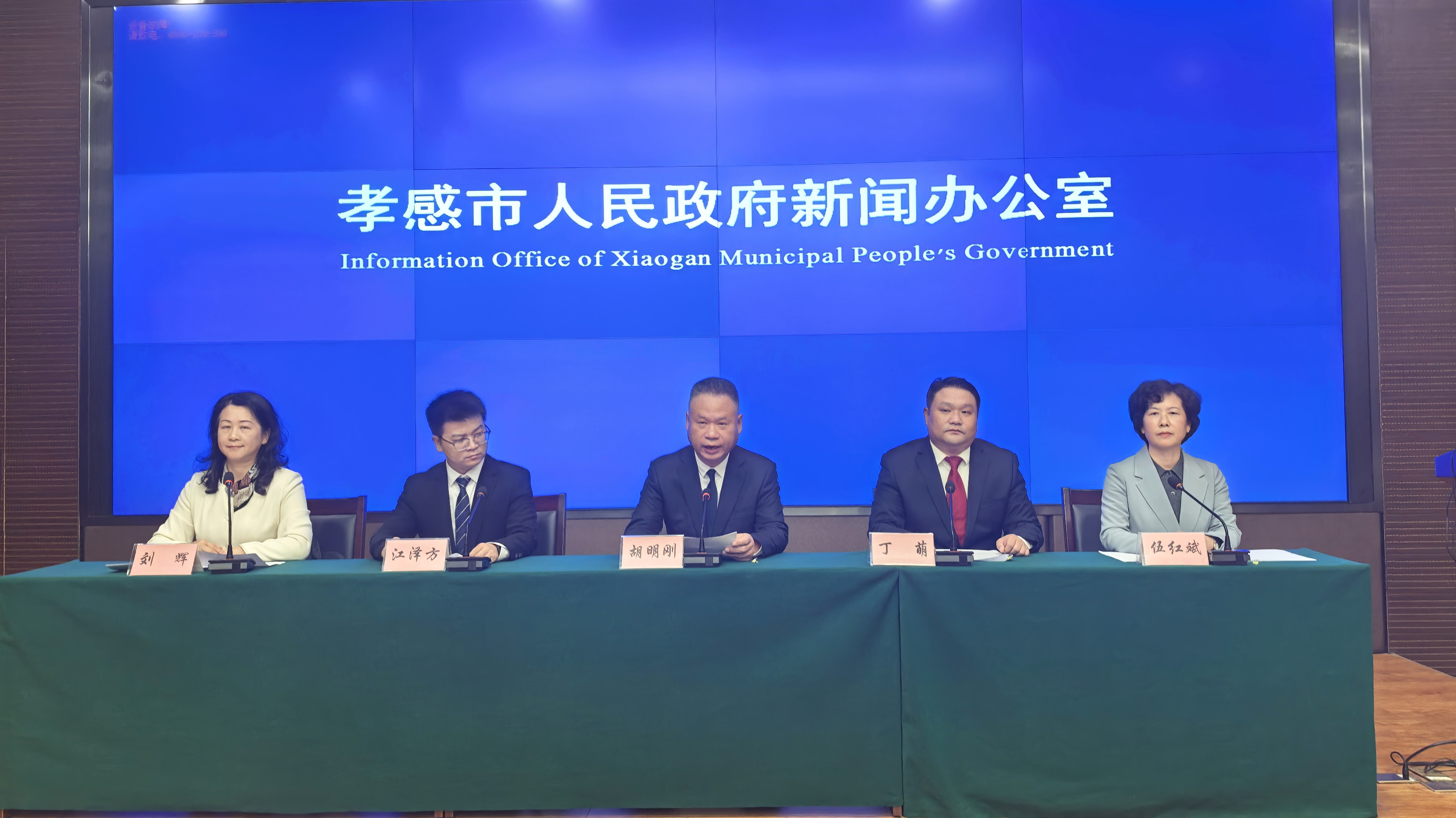 孝感市教育局党组书记、局长胡明刚(左三)介绍孝感市“十四五”教育事业高质量发展成就。