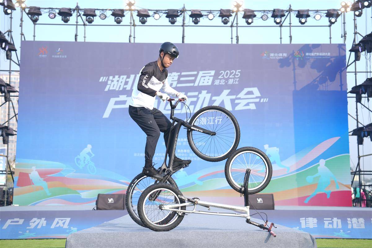 10月28日,潜江青年运动主题公园热闹非凡,随着小轮车选手腾跃转体的利落身影划破天空,主题为“荆楚户外风 律动潜江行”的湖北省第三届户外运动大会正式开幕。这场盛会不仅点燃了户外爱好者的热情,更成为潜江“赛事+文旅+产业”融合发展的生动展台。