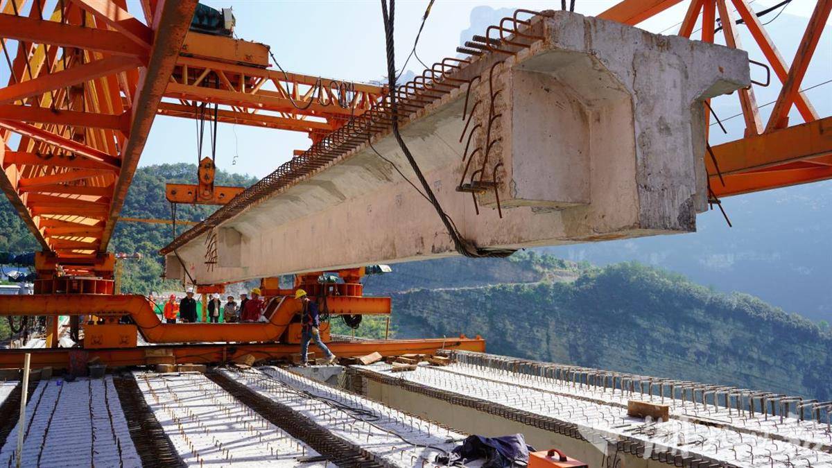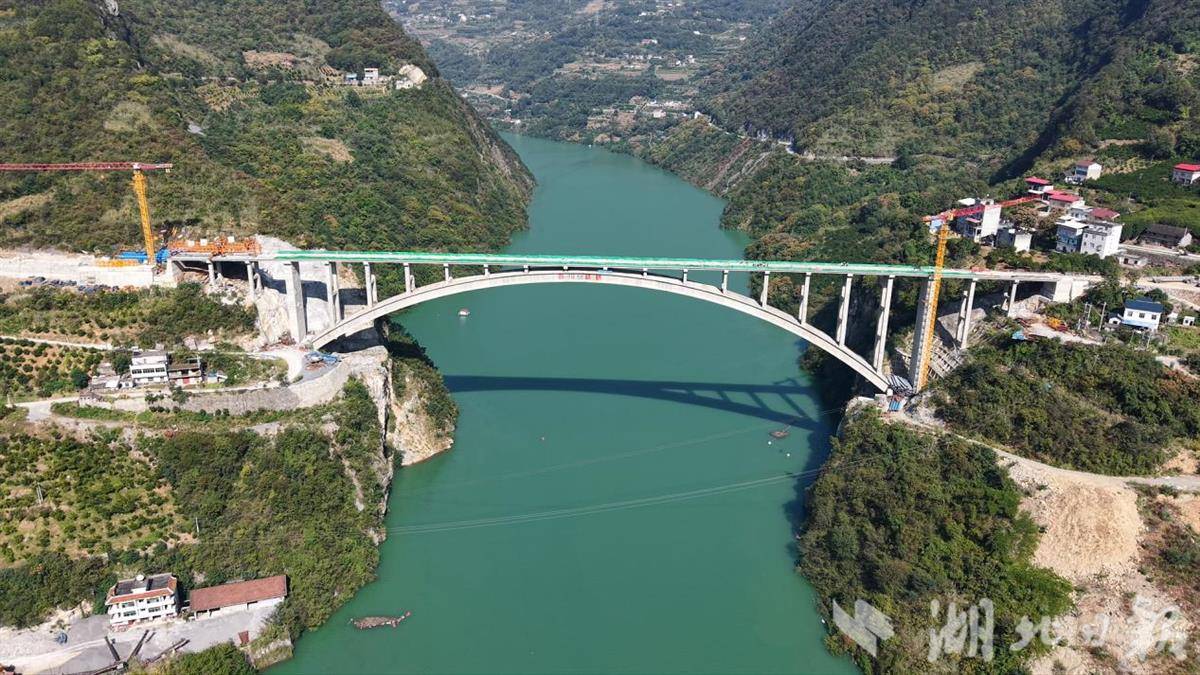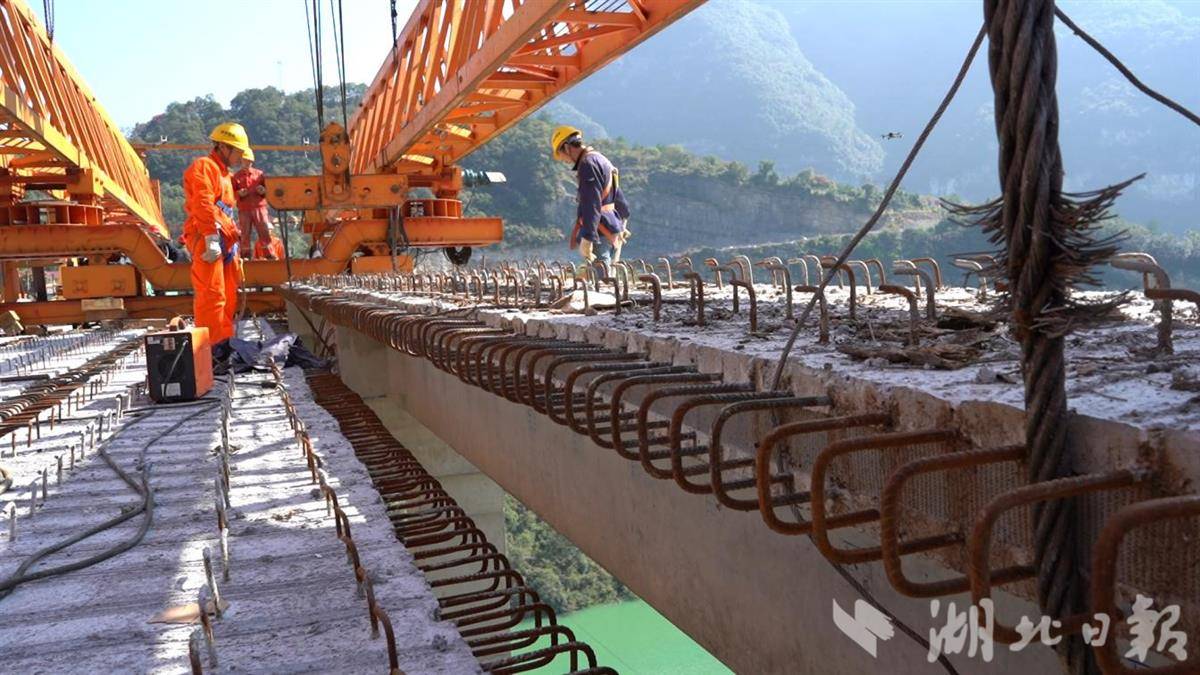 湖北日报讯 (通讯员田亚敏、黄文胜、雷丹)10月28日,随着最后一片T梁精准落位,横跨清江的天池口清江特大桥再次迎来关键节点——全线T梁架设任务圆满完成,标志着大桥正式迈入通车倒计时阶段。截至目前,项目总体建设进度已达90%,为年底前通车奠定了坚实基础。