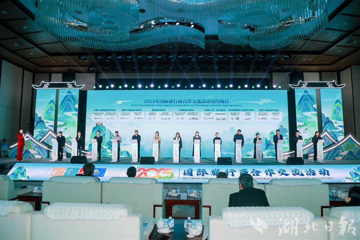 活动现场,近30家旅行商与十堰本地旅行社、景区、酒店等企业达成合作,签约项目18个,内容涉及入境旅游业务、旅游包机、专列、京堰研学、低空文旅及民宿集群建设运营等多个方面。其中,十堰文旅体投资发展集团分别与中国旅行社总社(上海)有限公司、北京青年报社签署入境游和研学游协议,与携程美洲区签订美加入境游客业务合作协议;十堰市亨运文旅产业发展有限公司与香港永安旅遊有限公司签署香港入境游合作协议。