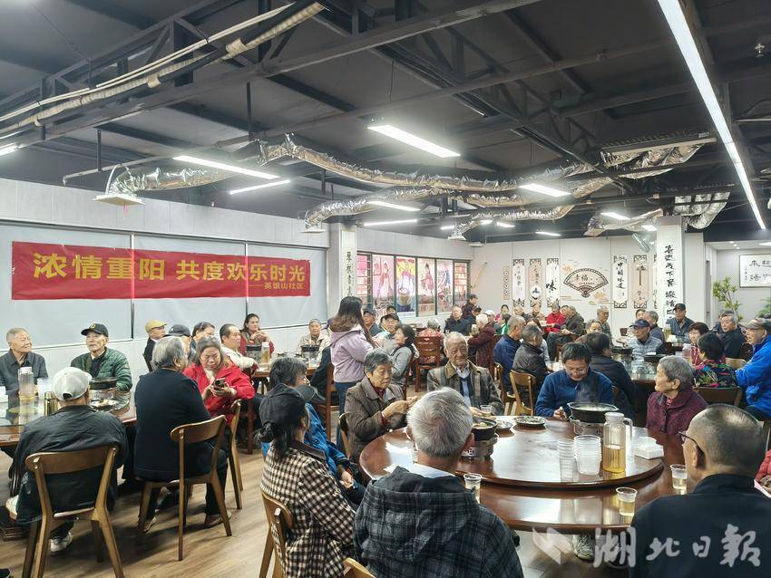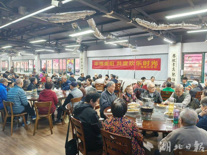 湖北日报客户端讯(通讯员黄士满)金秋送爽,丹桂飘香,又逢重阳佳节。10月29日上午,西陵区夜明珠街道英雄山社区联合幸福食堂,以一场热闹温馨的重阳节百家宴,邀请社区老人、微网格骨干及居民代表齐聚一堂,在欢声笑语中共度美好时光。