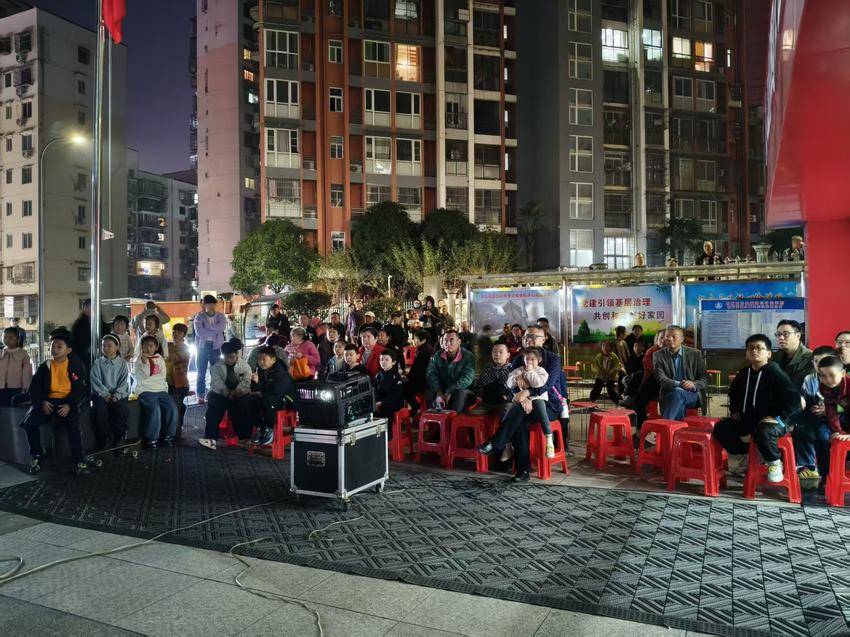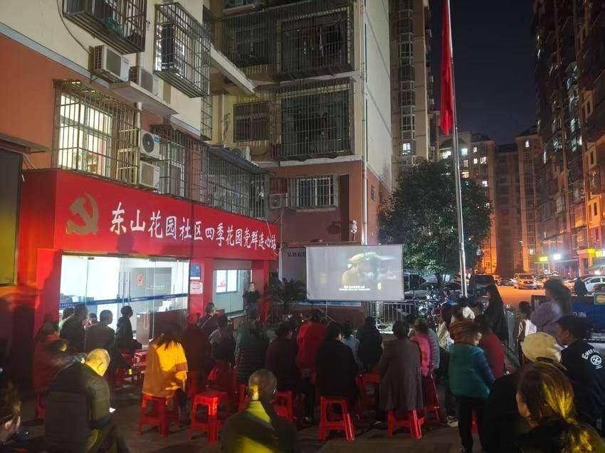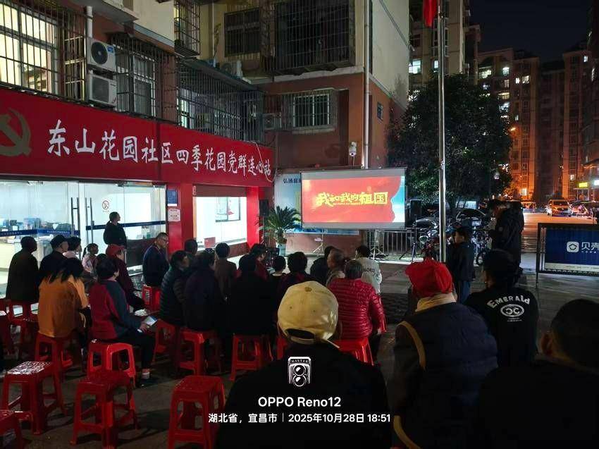 湖北日报客户端讯(通讯员艾思为)10月27日晚,宜昌市西陵区北苑街道东山花园社区在四季花园小区广场开展“唯见长江 全城一座电影院”公益电 影放映活动,组织辖区居民共同观看爱国影片《我和我的祖国》。