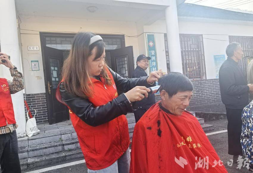 湖北日报客户端讯(通讯员 刘媛媛)10月28日,潘家湾土家族乡望洲坪村村委会广场热闹非凡,村里特邀宜都市歌舞剧团带来文艺汇演,“邓昌雄流动义剪志愿服务队”也来到现场提供免费理发服务,为村内近70位老人送上贴心的节日祝福和问候。