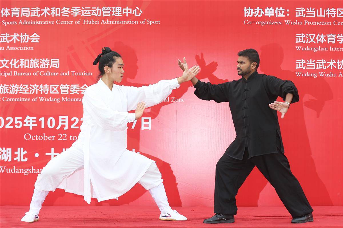 10月25日,2025国际武当太极文化节拉开帷幕。来自全球30多个国家和地区的2000余名太极爱好者、文化学者和文旅行业代表齐聚武当山,共同感受太极文化的独特魅力。