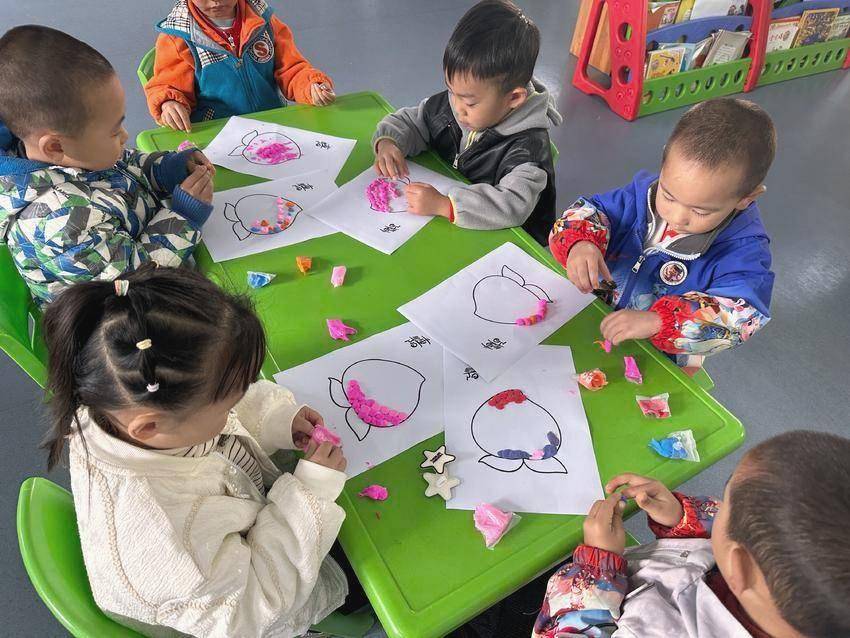 小班孩子们用小手认真地搓、揉、捏,不一会儿,一个个粉嘟嘟、象征健康长寿的“寿桃”便新鲜“出炉”。孩子们举起自己的作品,小脸上满是自豪,仿佛在说:“我要把这个最甜的寿桃送给我的爷爷!”