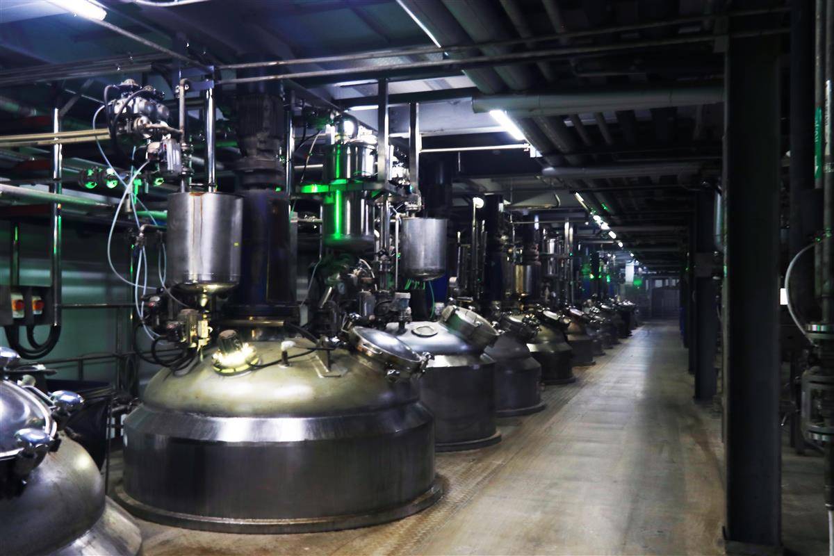 银科新材生产车间的反应釜阵列。(受访者供图)