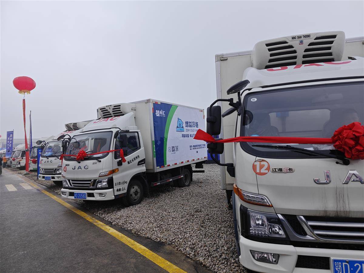 开园仪式现场,一字排开的冷链配送货车。湖北日报全媒记者 何辉 摄