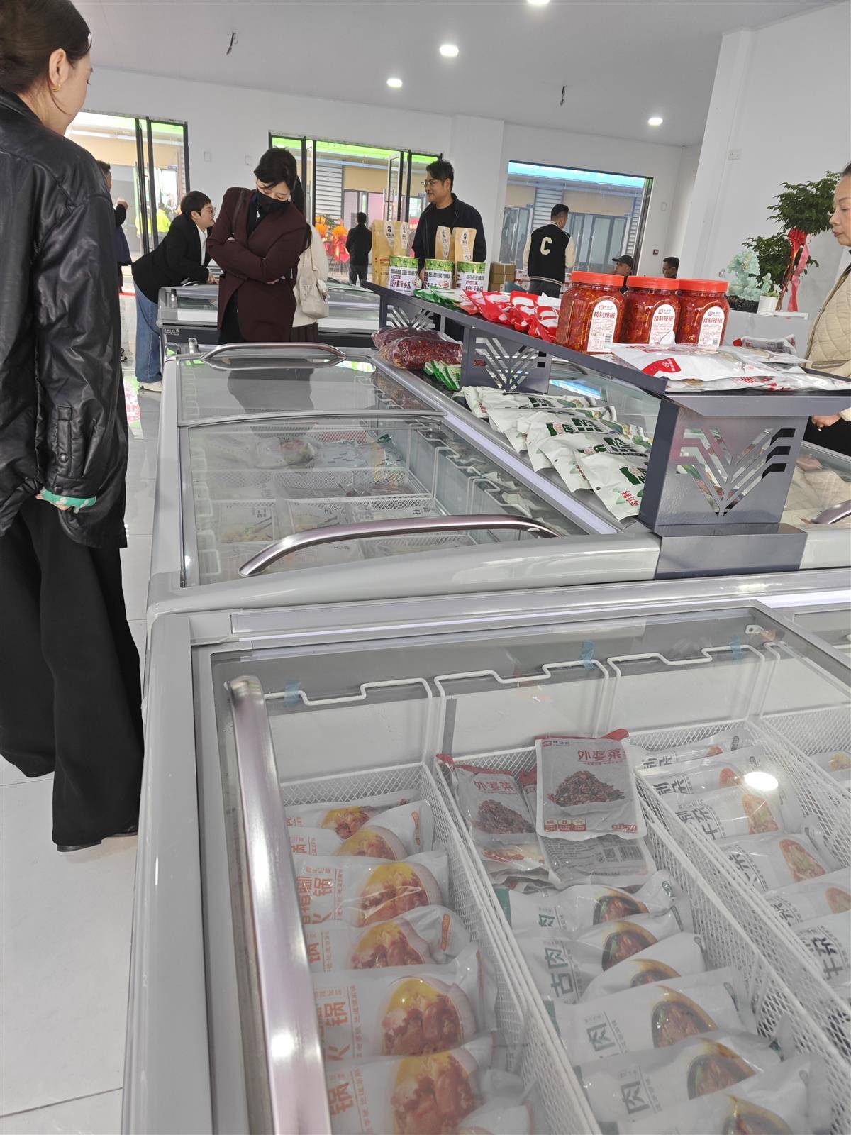 几步之遥的“中国酒店特色菜”店铺,冰柜里除了常规食材,荆州特色的笔架山鱼肚、公安牛三鲜火锅格外显眼。几位食材供应商围着店主,一边介绍产品,一边忙着互加微信。